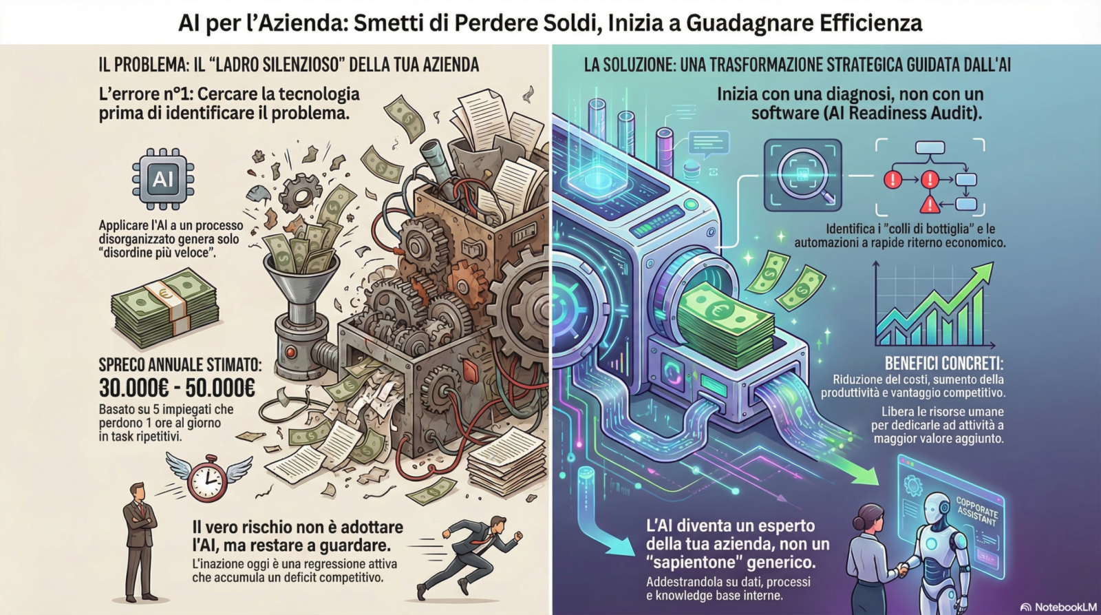 Ignorare l’AI significa scegliere di perpetuare problemi strutturali come processi aziendali inefficienti, difficoltà nell’analisi dei dati e un crescente ritardo nell’innovazione tecnologica. I competitor che sfruttano l’intelligenza artificiale stanno già risolvendo queste criticità , diventando più agili e produttivi. In questo scenario, l’inazione non equivale a stare fermi; è una regressione attiva che accumula un deficit competitivo.